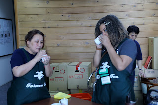 Ready to head north. Before we visit TaoChuMiao tea district, where the home of Oriental Beauty... we need to make an important stop at HGT. Since Lishan region is taking a long ride, so TOST has not planned to drive everyone there, but instead, we have the best Lishan Oolongs get set here in FengYuen at the headquarter of HGT. It is always a privilege to have our good friend, Johnny Tu to give us a grand cupping of Lishan teas.